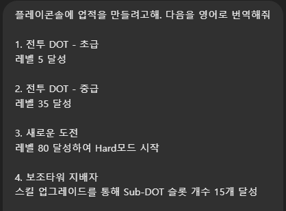업적 8개 정도 만드는데 30분도 안걸린 것 같다.